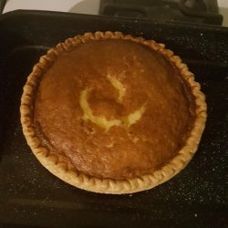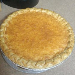 2In a large bowl, combine sugar and flour. Beat in the eggs and buttermilk until blended. Stir in the melted butter and vanilla. Pour filling into the pie crust.