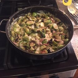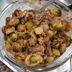 4While the sauce is cooking, lay the Brussels sprouts, cut sides down, onto a baking sheet, and bake in the preheated oven until the sprouts are browned, about 15 minutes. Transfer the browned sprouts to the sauce, toss to coat, and season to taste with salt and black pepper.