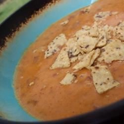 2Crush tortilla chips into bottom of individual serving bowls. When chili and soup are hot, scoop chili over chips and pour soup over chili. Sprinkle with chopped onion and serve.