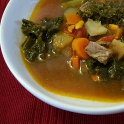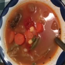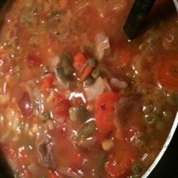 "A pot of yummy deliciousness, that's what this soup is. Good for a chilly day when a bowl of warm soup is just what you need, or when you want to use up your fresh summer veggies. Goes well with a loaf of crusty Italian bread. You can put pretty much any vegetable combination in this soup. I have used chopped fresh okra; it's good for a nice pop in your mouth. You can also use pearled barley in place of the oro pasta. Just add it to the soup when you put in the veggies, and an extra cup of water. I like that it makes a big pot, because it's even better as leftovers."