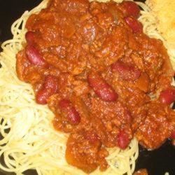 5Spoon cooked spaghetti into bowls and top with chili. Sprinkle with cheese if desired.