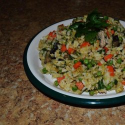 5Spoon the cooked rice into the skillet and stir well. Serve the pilaf hot with soy sauce on the side for added flavor.