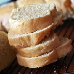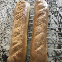 5With a very sharp knife, make 3 or 4 diagonal cuts about 1/4 inch deep across top of each loaf. Bake in a preheated 375 degrees F (190 degrees C) oven for 20 minutes. Brush again with egg white mixture. Bake for an additional 15 to 20 minutes, or until bread tests done. If necessary, cover loosely with foil to prevent over browning. Remove from baking sheet, and cool on a wire rack.