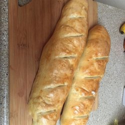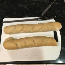 3Punch dough down, and divide in half. Turn out onto a lightly floured surface. Cover, and let rest for 10 minutes. Roll each half into large rectangle. Roll up, starting from a long side. Moisten edge with water and seal. Taper ends.
