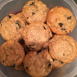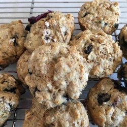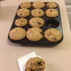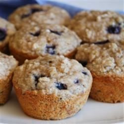 2In a large bowl, stir together the all-purpose flour, whole wheat flour, sugar, oat bran, quick-cooking oats, wheat germ, baking powder, baking soda and salt. Gently stir in the blueberries and walnuts. In a separate bowl, mix together the mashed banana, buttermilk, egg, oil and vanilla. Pour the wet ingredients into the dry, and mix just until blended. Spoon into muffin cups, filling all the way to the top.