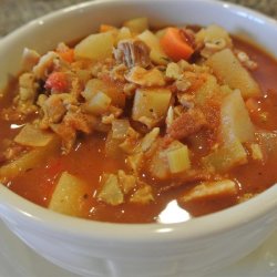 "How can a New Englander love Manhattan over New England clam chowder? Because I like to taste the clams, not just heavy cream with lumps. I came up with this recipe today using what I had on hand, but feel free to improvise. This tastes just like the chowder you get at the beach with clam cakes! When reheating, do not boil or it will 'rubberize' the clams."