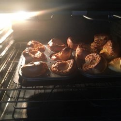 4Bake for 30 to 35 minutes in the preheated oven. Serve immediately. I turn my oven off and leave the door partially open with the yorkies inside to keep them from deflating while waiting for everyone to ask for seconds.