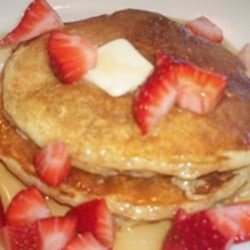 4Pour batter about 1/4 cup at a time onto the prepared griddle. Cook 1 to 2 minutes, until bubbly. Flip, and continue cooking until lightly browned.