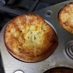 2Whisk eggs, milk, flour, salt, and cayenne pepper together in a small bowl until smooth. Pour batter into each muffin tin, filling to about 3/4 of the way up the sides. Sprinkle about 1 teaspoon of grated Cheddar cheese atop each popover.