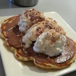 "I love banana pancakes and my daughter loves chocolate chip pancakes, so we came up with this yummy recipe to make us both happy! Serve with a dollop of soft butter, a sprinkle of powdered sugar, sliced bananas, and whipped cream with a side of butter pecan or maple syrup."