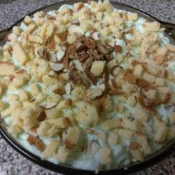 "This is a light and fluffy dessert salad based on pistachio pudding; the pudding is made lighter with the addition of whipped topping. Add an extra can of mandarin oranges, if you like."