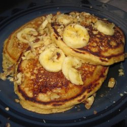 "A basic whole-grain pancake to get you going in the morning. We also like to change it up a bit by adding 1/2 cup applesauce and 1 1/2 teaspoons of cinnamon instead of the banana."