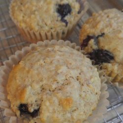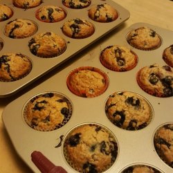 1Combine oats, flour, sugar, baking powder, and salt. Mix in milk, egg, and oil; mix just until dry ingredients are moistened. Fold in blueberries. Fill greased muffin cups 2/3 full with batter.