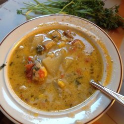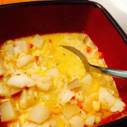 "A great, easy chowder made with bacon, potatoes, corn and fish. You can replace the milk with half-and-half or cream and the fish with seafood if you want a richer chowder."