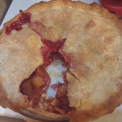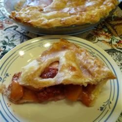 2Place peaches and berries in a colander for about 15 minutes to drain any excess fluid , then transfer to a large bowl. Gently toss with sugar, flour, and cinnamon. Transfer to a pie crust. Dot with butter, and top with remaining crust. Cut vents in top crust, and sprinkle with coarse sugar.