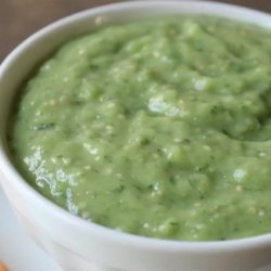 "This spectacularly simple green sauce may be the perfect summer condiment. It requires no cooking, only takes 10 to 15 minutes to make, looks gorgeous, and tastes amazing with anything grilled and most things that aren't. Spoon over grilled pork tacos, grilled meats, or serve with chips."