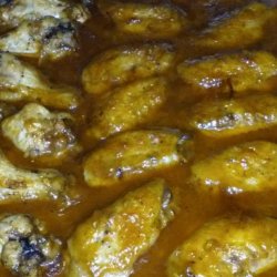 3Arrange chicken wings into a baking dish; pour the sauce over the wings. Cover dish with aluminum foil.