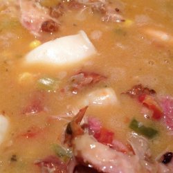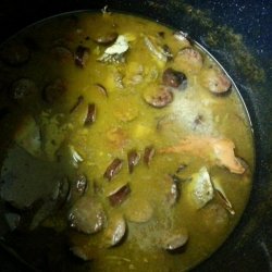 "This can be made with hundreds of different combinations of smoked meats, game, poultry, and seafood, and in my opinion, the more the merrier. The procedure is pretty straightforward, although you're talking about a full day's project. Serve in a large soup plate with a scoop of cooked white rice, a sprinkle of green onion, and a pinch of cayenne."