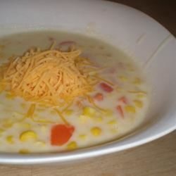 Stir in thawed corn, potato flakes, salt, ground peppers, and 3 cups water. Bring to boil. Reduce heat. Cover, and simmer for 10 minutes.