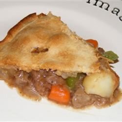 "A great deep dish meat pie made with potatoes, carrots and peas in a rich gravy. Lamb chicken or pork can be used in place of beef. A great recipe for leftover meat!"