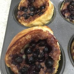 4Beat milk, eggs, 1/4 cup sugar, and vanilla together in a large bowl. Whisk flour into the milk mixture until you have a batter. Divide batter between muffin cups. Drop even amounts of blueberries into each batter portion. Stir 1 tablespoon sugar and cinnamon together in a small bowl; sprinkle evenly over the batter portions.