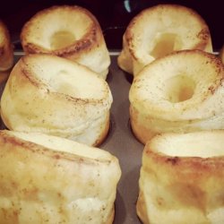 2In a medium bowl, mix flour and 1 cup milk until a smooth paste is formed. Whisk in eggs one at a time, mixing thoroughly after each addition. Whisk in remaining 1 cup milk.