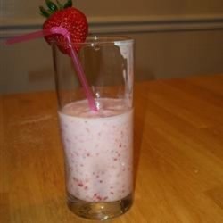 1Blend the strawberries, milk, pineapple juice, vanilla yogurt, sugar, ice, and wheat germ in a blender until smooth. You may need to scrape down the sides of the blender a couple of times. Pour into glasses and serve immediately.