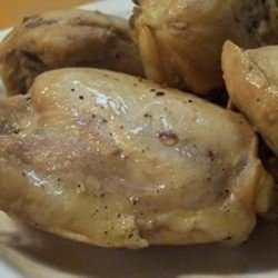 3Place marinated chicken pieces in hot oil. Pour remaining marinade over all, and add bay leaves. Reduce heat to low, and cook chicken pieces for about 10 minutes on each side, or until no longer pink and juices run clear. The marinade will reduce, and make a nice gravy. Remove bay leaves, and serve immediately.