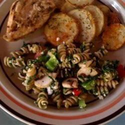 2In a large pot over medium heat, warm olive oil and saute garlic until golden; add pasta and spinach and mix.