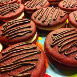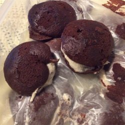 4Turn the little cakes over on their backs. Spoon a dollop of filling onto half of the little cakes. Place the other half of the cakes on top of the filling to form sandwiches.