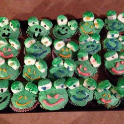 2Scoop 2/3 of the frosting into a small bowl and mix with green food coloring. Frost the cupcakes. Sprinkle some of the green sugar over the tops.
