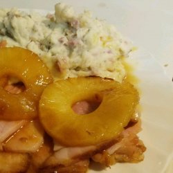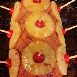 Pour brown sugar mixture over honey and arrange pineapple rings decoratively atop ham. Secure pineapple rings with toothpicks.