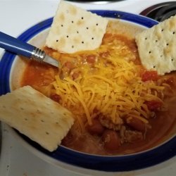 "Make this easy and surprisingly hearty chili with ground chicken or turkey. Simmer 3 hours on stove top, or 8 hours in a slow cooker on Low (3 hours on High)."