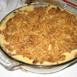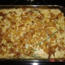 3Layer the bottom of a 2 quart casserole dish with 1/2 of the green beans. Pour half of the soup mixture over beans, and add half of the processed cheese. Repeat layering, and top with remaining onions.