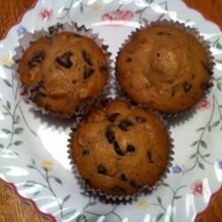 3Stir flour into egg mixture alternately with milk. Mix in an additional 1 tablespoon of flour. Fold in chocolate chips and walnuts. Spoon batter into prepared muffin cups so that cups are half full.