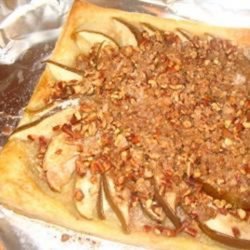 2Unfold pastry and cut into a 10 inch circle. Place on a large, ungreased baking sheet. Brush with melted butter or margarine. Arrange apples in the center of the pastry, leaving a 1/2 inch wide border of pastry. Spoon almond topping gently over the apples, being careful it doesn't spill over the edges of the pastry.