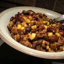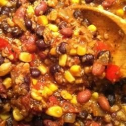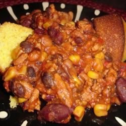 "This is a thick, spicy, slow-cooked chili I adapted from another recipe. It's great for parties or cold nights! Serve topped with shredded Cheddar cheese or crumbled cornbread."