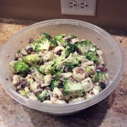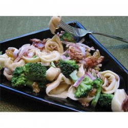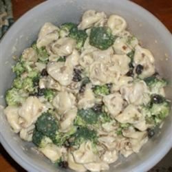"Crisp, fresh broccoli and cheese tortellini with a creamy dressing are the basis of this salad. Raisins, sunflower seeds and red onion dress it up. This recipe is most requested at potlucks."