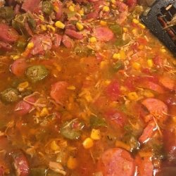 "Gumbo has a history of being made with roux, but my Mom's recipe didn't have it. Now it is my most requested item at work, tailgating parties, and at home. The vegetables really shine in this gumbo!"