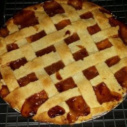 3Stretch bottom pie crust into a 9 1/2-inch pie pan; cut the other crust into 1-inch wide strips. Spread the peach filling evenly into the bottom crust, and make a lattice crust from the strips, weaving the strips over and under each other. Pinch strips to the bottom crust at both ends.