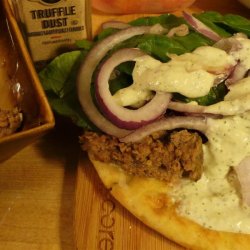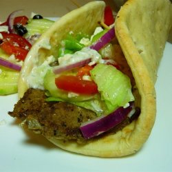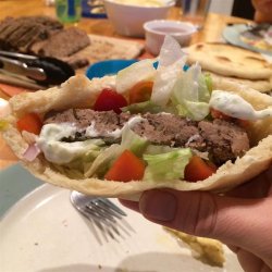 "This Greek/Lebanese style meat loaf is sliced and served with pita bread, tzatziki, and tomatoes for a delicious gyro that is the closest I've come to emulating my favorite Mediterranean restaurant. The preparation time seems long, but most of it is resting time, so you can be doing other stuff! You can substitute pork or chicken for the ground lamb and beef if you prefer."