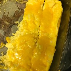3Bake in the preheated oven until set, 25 to 30 minutes. Sprinkle Cheddar cheese over eggs and continue baking until cheese is melted, 2 to 3 minutes more.