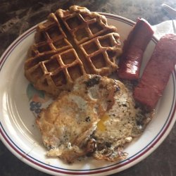 "These flavorful waffles are filling, lightly spiced, slightly sweet, and perfect for the holidays. They can easily be made using leftover sweet potato casserole and cranberry sauce after Thanksgiving or for a festive Christmas morning breakfast!"
