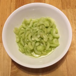 2In a small bowl combine vinegar, sugar, salt and ginger. Mix well. Place cucumbers inside of the bowl, stir so that cucumbers are coated with the mixture. Refrigerate the bowl of cucumbers for at least 1 hour before serving.