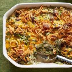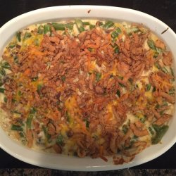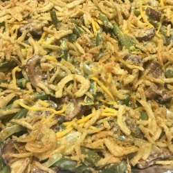 "No cans here! Fresh mushrooms, onion, and herbs with frozen green beans, sour cream, and cheddar cheese make this a delightfully tasty twist on the traditional casserole. I developed this recipe, longing for a 'no cans' version of the classic dish. I made this one year for my husband's family at Christmas time, and now they ask for it every year! My husband asks me to make it for dinner throughout the year."