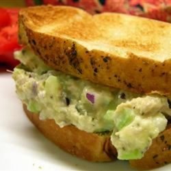 "My husband says this tuna salad is even better than his mother's. Not too pickly tasting, mild with a nice blend of flavor. You can add more mayo for a creamier salad."