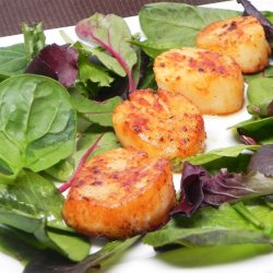 6Pan fry the scallops until golden brown, about 2 minutes on each side.