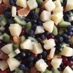 1In a large bowl, toss pineapple, orange, kiwi, grapes and strawberries. In a small cup or bowl, combine lime zest, lime juice, honey, poppy seeds and 1/4 cup reserved pineapple juice. Stir well and toss with fruit.