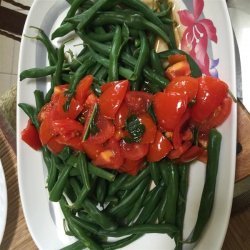 "These beans are briefly boiled and tossed with cherry tomatoes in a buttery basil sauce to make the most yummy green beans ever! We serve these at Easter Dinner every year but are a delicious accent to any meal."