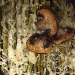 2Place asparagus on a baking sheet. Drizzle with olive oil, and toss to coat. Arrange asparagus spears in a single layer. Spread Parmesan cheese over asparagus, and season with freshly ground black pepper.